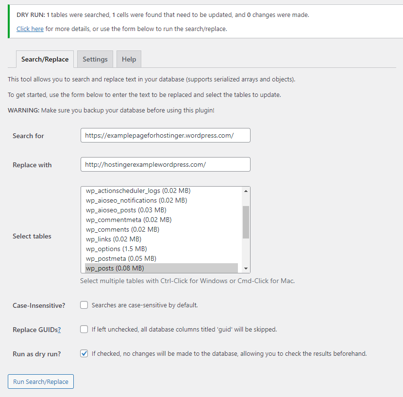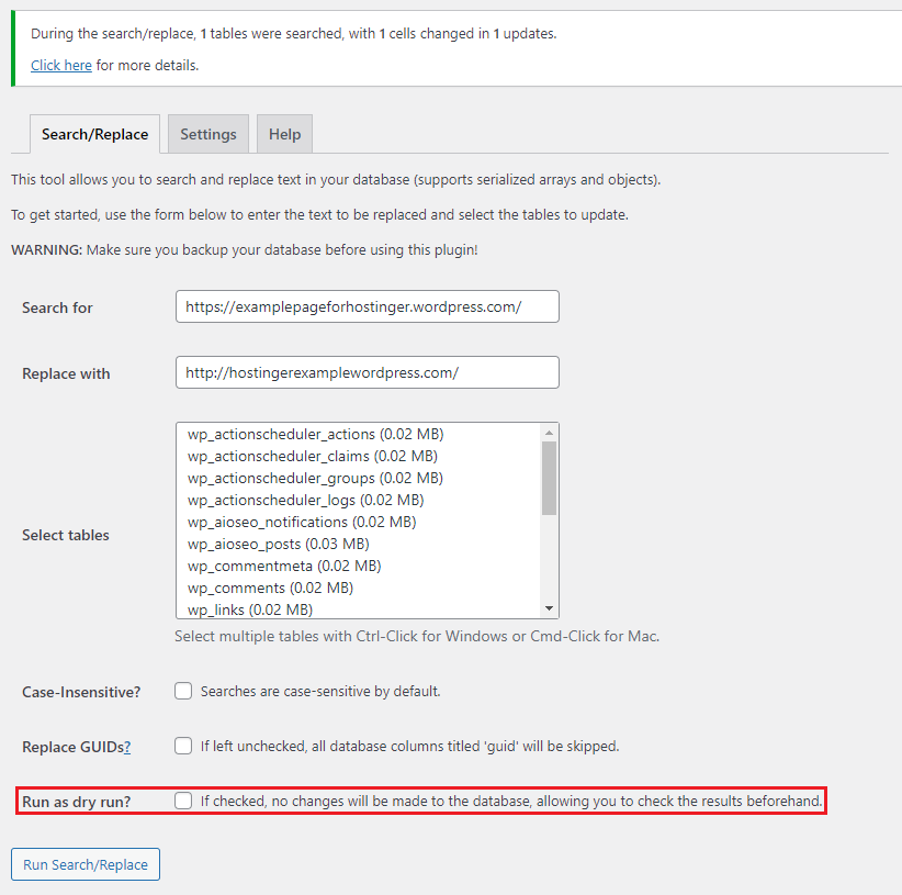 First, check the Run as dry run? box to see the details of how many potential changes the plugin found.
