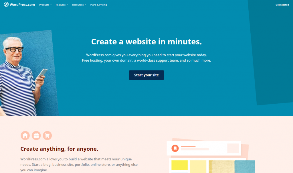 WordPress.com is a freemium blogging service that makes it easy for anyone to set up a website using WordPress software. Since all of its plans include a free domain and website hosting, you won't need to search for a separate hosting company or domain registrar.